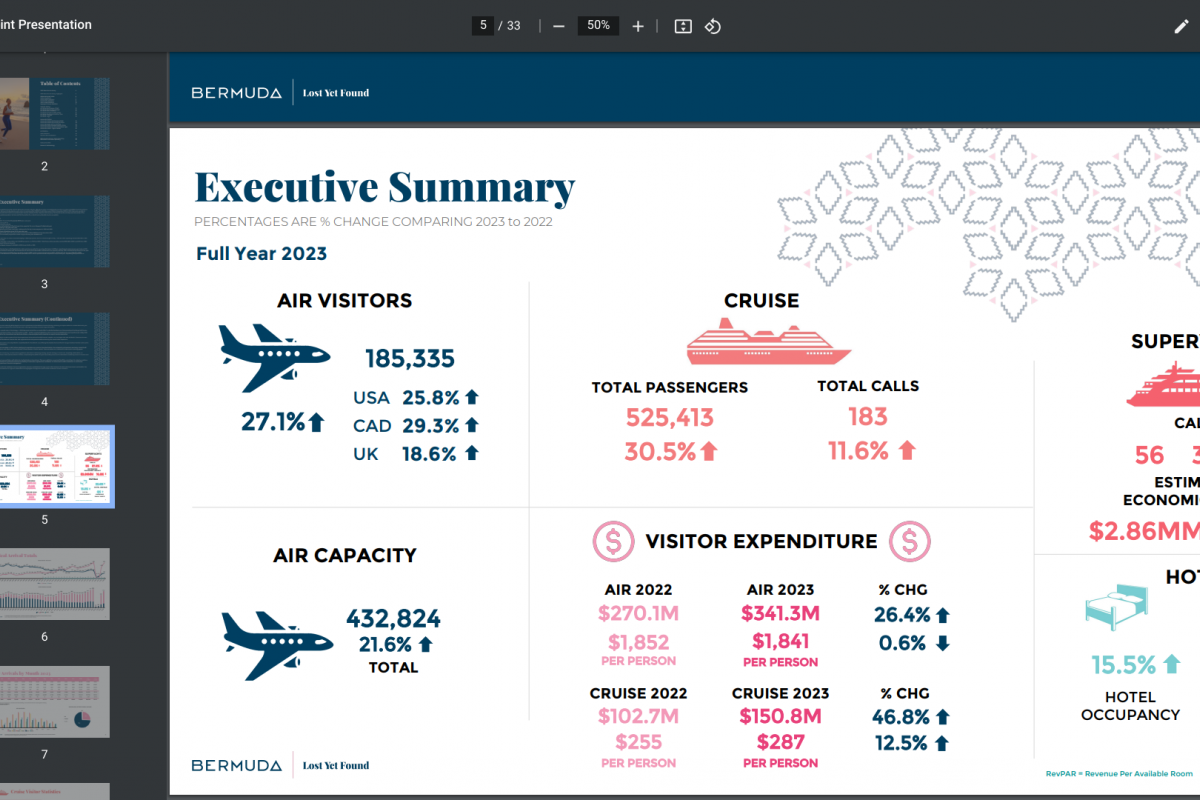 This good news helped boost Bermuda's tourism industry in 2023 when arrivals (air, cruise, and yacht) increased by 29.1% year over year.