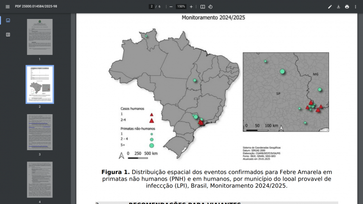Yellow fever travel alert Issued for São Paulo, Minas Gerais, Roraima and Tocantins